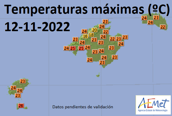alturas sábado – 25,1 Es Capdellà; 24,9 Puerto de Palma; 24.3 Sant Elm.