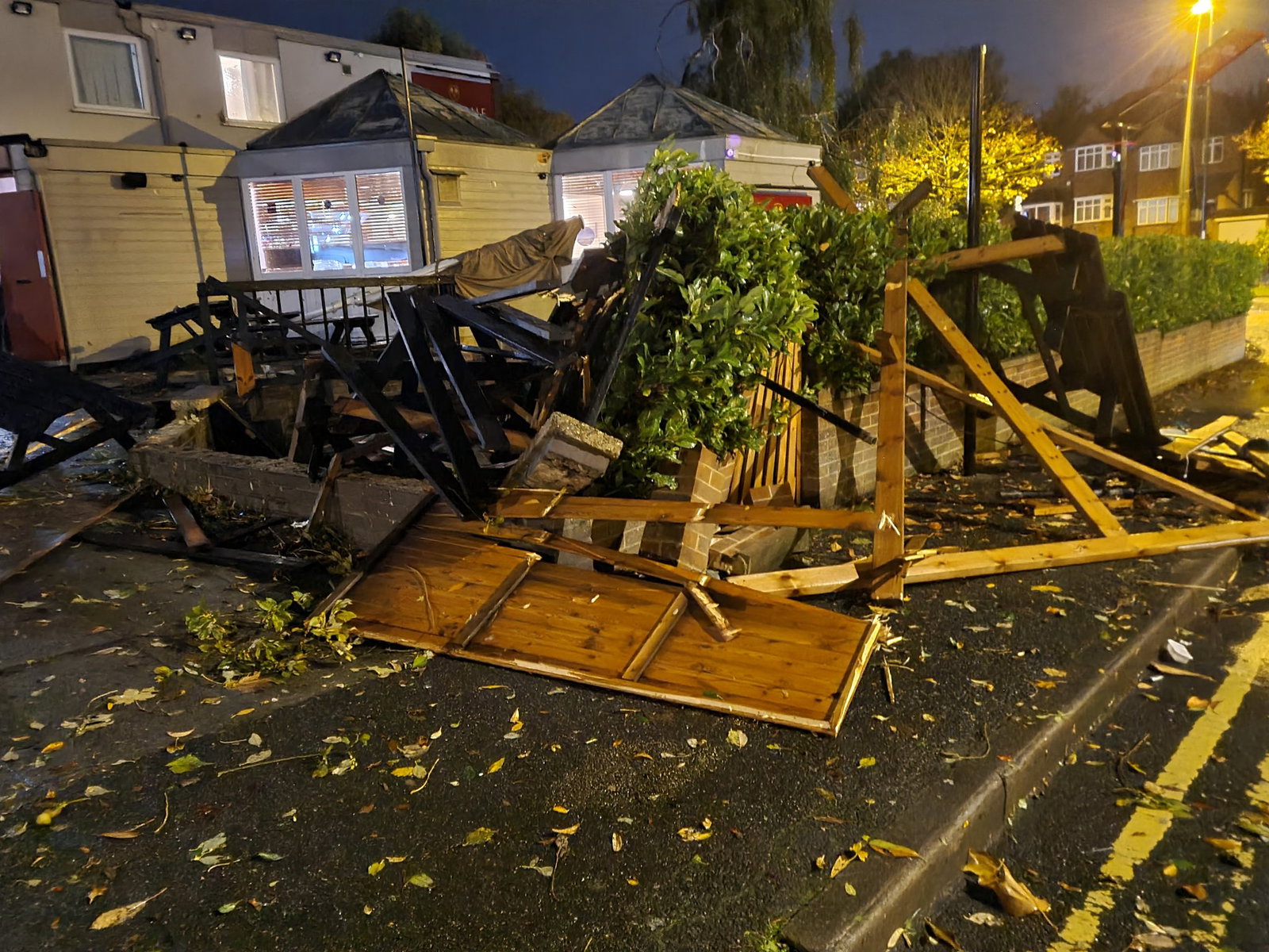 ‘Mini Tornado’ destruye por completo la taberna al aire libre de un pub del Reino Unido mientras continúa el clima loco
