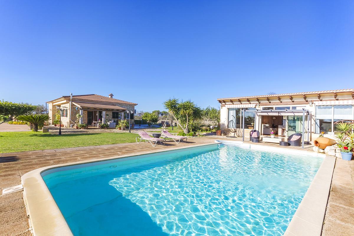CASA DE CAMPO con casa de invitados, piscina y vistas a la montaña cerca de Inca, en gran terreno de unos 8.162 m². 4 dormitorios y 3 baños. Referencia INC52733. Consultas 971-532984; info@balearic-properties.com
